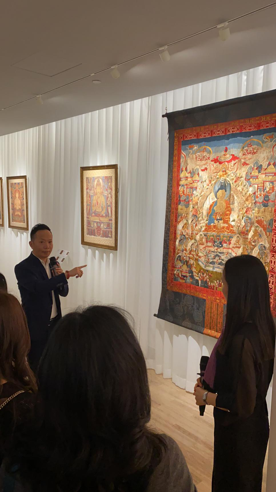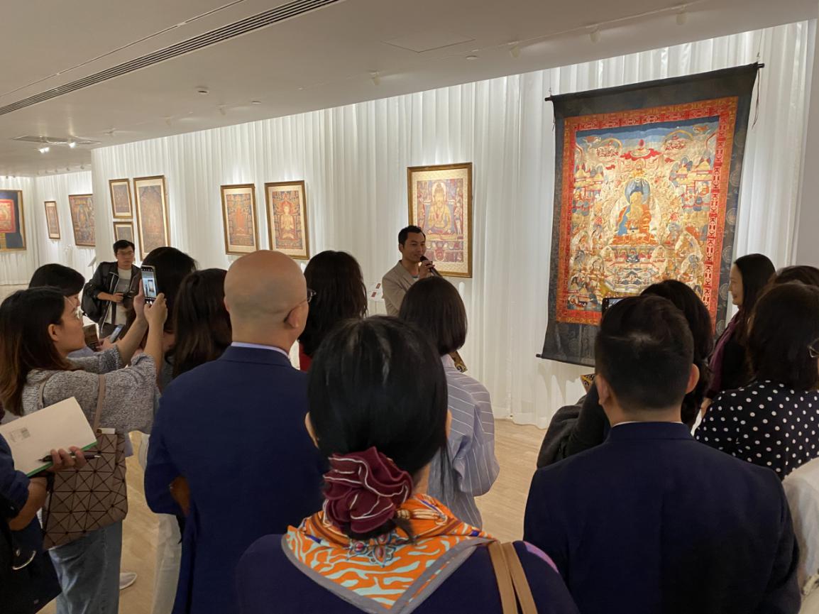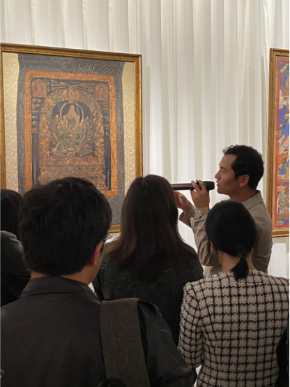 為了讓觀眾更好地了解本次展出唐卡的工藝美及其背后所蘊含的人文價值,桂心堂主人邀請了布達拉宮唐卡專家——次仁占堆老師、曾長期生活于蘇州的資深唐卡愛好者葉小龍,一同在1月4日的下午,給觀眾們帶來了一場深入淺出的導(dǎo)覽活動。