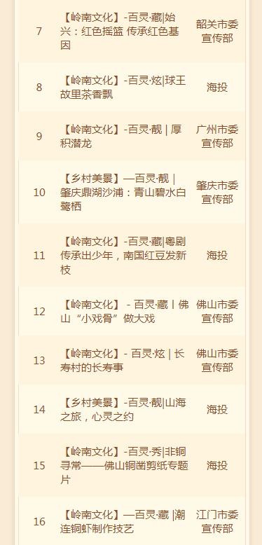 據了解,為慶祝新中國成立70周年,生動展示黨的十八大以來,廣東高舉習近平新時代中國特色社會主義思想偉大旗幟、深入推進美麗鄉(xiāng)村建設的豐碩成果,廣東鄉(xiāng)村微視頻大賽于8月20日正式啟動。本次微視頻大賽歷時2個多月,共征集參賽作品9375條,審核展示5996條。廣東學習平臺PC端和手機APP開設參賽作品展播專題。經過網上展播和網絡投票,以及專家評審,評選出一等獎30名,二等獎100名,三等獎1000名,以及最佳創(chuàng)意獎、最佳畫面獎、最佳人氣獎各10名。佛山、廣州、惠州等10個地級以上市黨委宣傳部獲大賽組織獎。