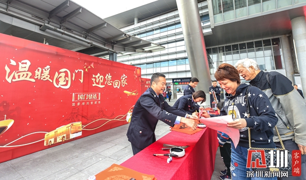 見圳客戶端·深圳新聞網(wǎng)2020年1月22日訊(見圳客戶端、深圳新聞網(wǎng) 記者 張玲 通訊員 劉姝夢)巍巍國門彰顯大國風范,涓涓暖流展現(xiàn)為民情懷。不辭風雪的歸鄉(xiāng)路上,國門——就是您的第一道家門。根據(jù)國家移民管理局統(tǒng)一部署,2020年1月17日至2月1日,深圳邊檢總站積極開展“溫暖國門迎您回家”主題活動,在各口岸出入境現(xiàn)場設置“國門驛站”,擺放“國門同框”合影墻、“家國情懷”留言板,點綴體現(xiàn)中國年的傳統(tǒng)文化元素表達祝愿,著力提升廣大出入境人員特別是歸國返鄉(xiāng)人員的獲得感、幸福感和歸屬感,各口岸沉浸在濃濃的年味里。