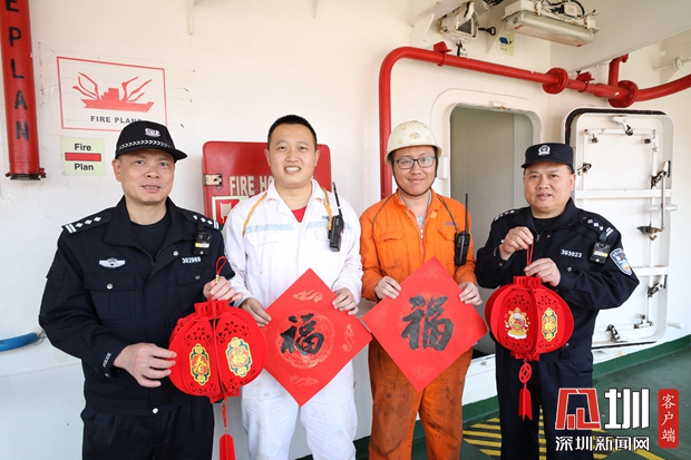 為了讓國際船舶上工作的中國籍船員感受到濃厚的春節(jié)氣息,鹽田邊檢站開展“迎春送福”登輪走訪活動。在實施登輪檢查的同時,向國際船舶上的中國籍船員贈送春聯(lián)、燈籠、中國結等節(jié)慶用品,將中國的“年”送上國際船舶,向船員送上新春祝福、節(jié)日問候。