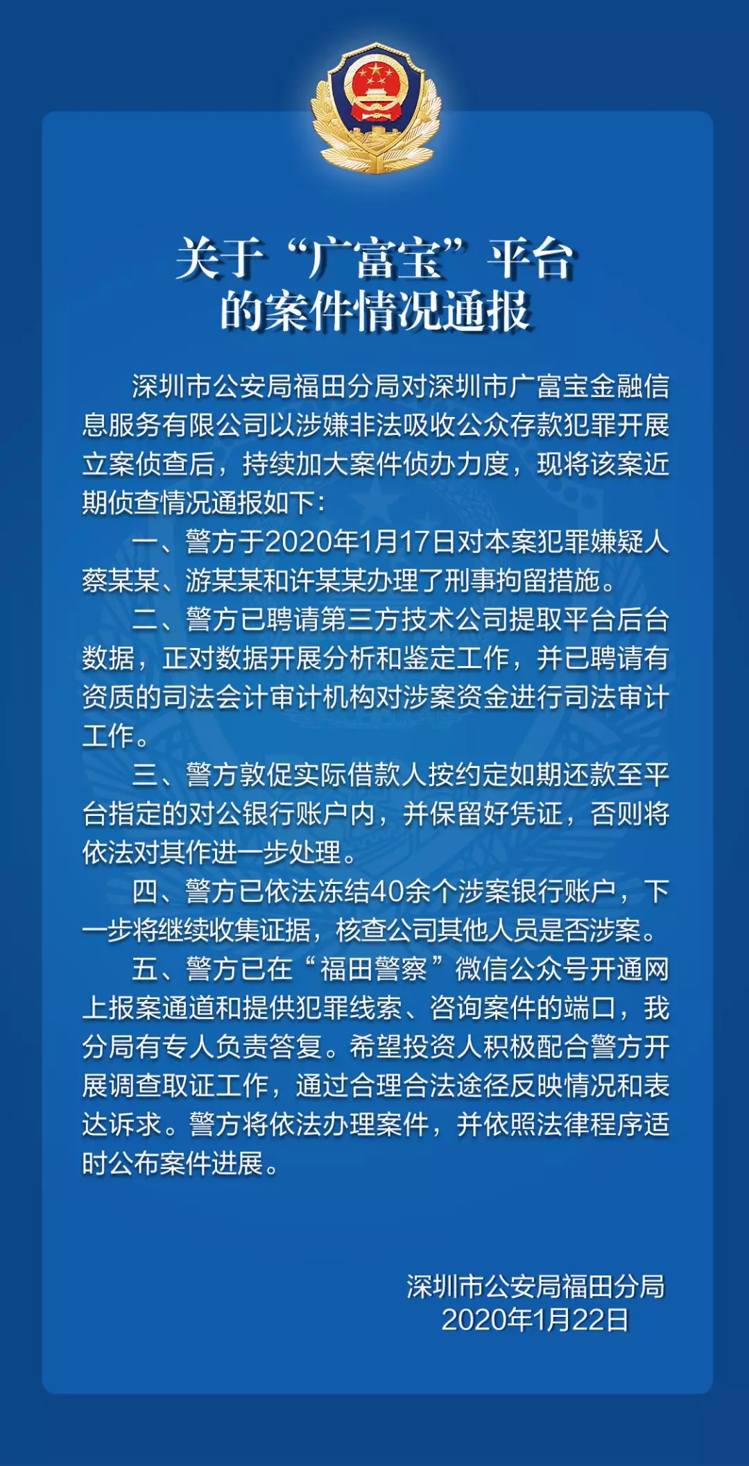 關(guān)于“廣富寶”平臺(tái)的案件情況通報(bào)
