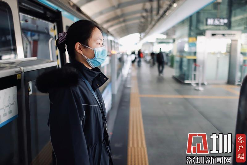 深圳地鐵3號線,工作人員戴著口罩進行值班。