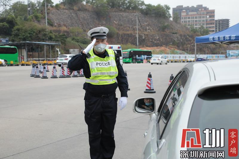 26日下午深圳黃鶴收費站,深圳交警對往來司機進行體溫檢測。