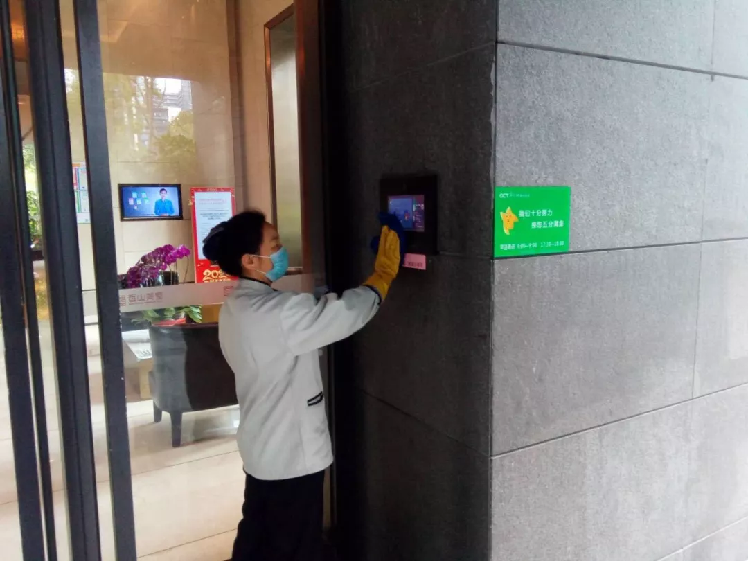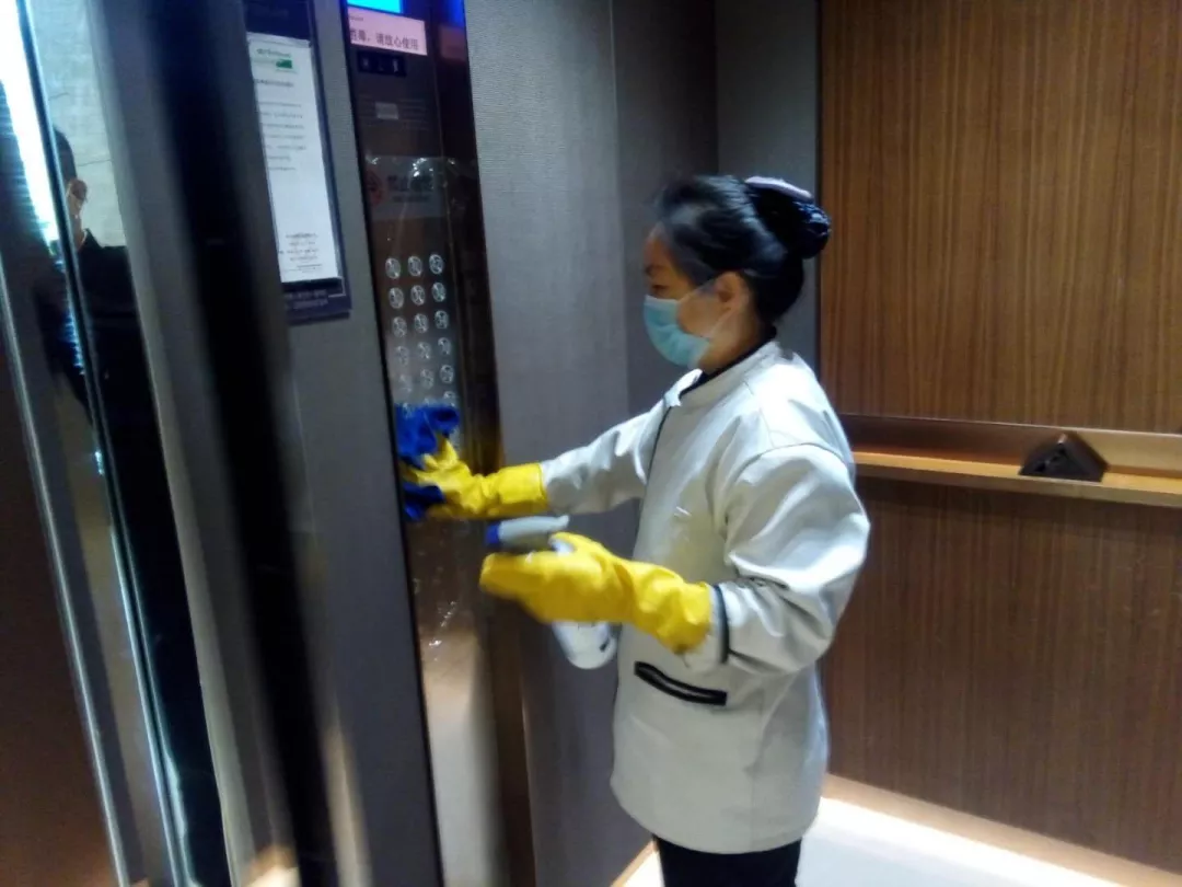 每天對(duì)小區(qū)公共區(qū)域大堂門把手、門禁對(duì)講機(jī)、電梯按鍵、大堂茶幾沙發(fā)等高頻接觸區(qū)進(jìn)行消毒及對(duì)轎廂按鈕定時(shí)更換保鮮貼膜。