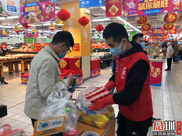 見圳客戶端·深圳新聞網(wǎng)2020年1月31日訊(見圳客戶端、深圳新聞網(wǎng)記者 胡津瑋)戴上口罩、手套,再穿上標(biāo)志性的紅色馬甲,市食藥志愿服務(wù)總隊(duì)的志愿者們紛紛走上超市的各個(gè)崗位,清理貨品、補(bǔ)貨、對購物車購物籃進(jìn)行清潔消毒、為來購物的市民測量體溫…據(jù)了解,由于春節(jié)期間各大商超缺少人手,在市市場監(jiān)管局與團(tuán)市委的指導(dǎo)下,市食藥志愿服務(wù)總隊(duì)迅速調(diào)動(dòng)全市在深的食品藥品安全志愿者,成立了由近300名食品藥品安全志愿者組成的春節(jié)“菜籃子”志愿者保障工作小組,為全市各大商超提供志愿服務(wù),全力保障市場供應(yīng)、消除市民顧慮,在防控疫情特殊期間注入了紅馬甲的正能量。記者今天便走訪了深圳的一家超市,尋找這批紅色的身影,了解他們一天的工作。