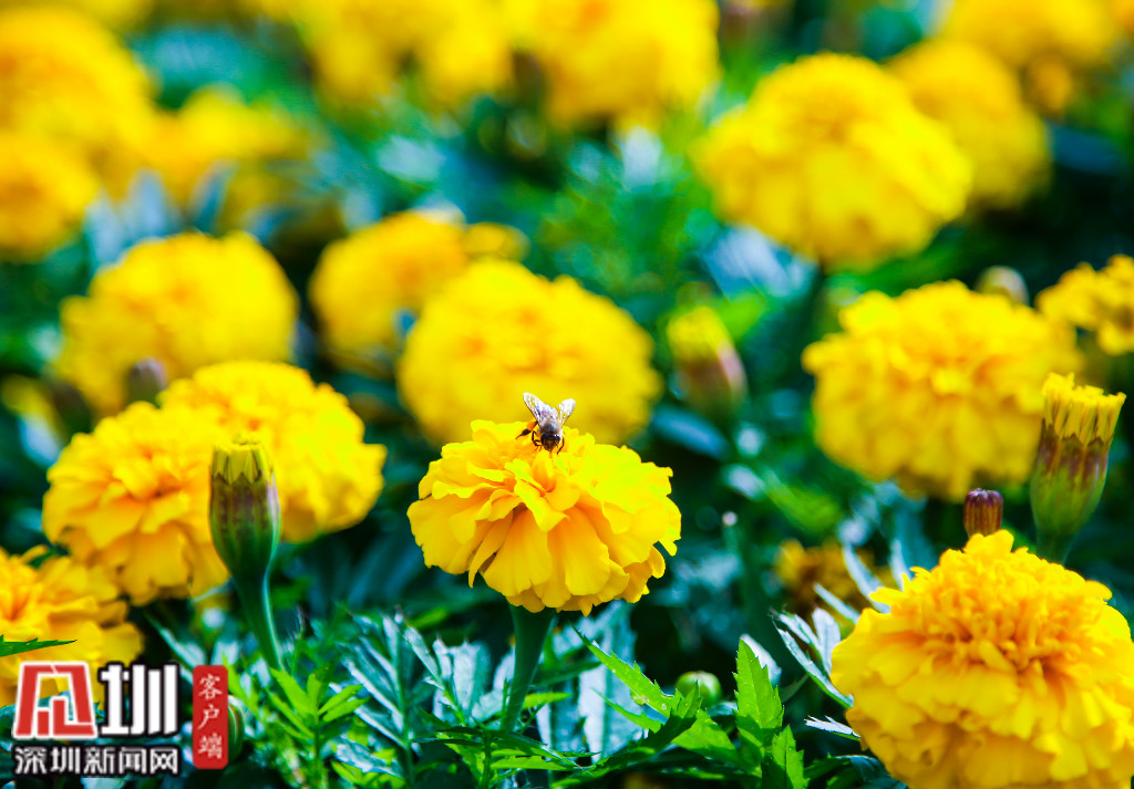 百花爭(zhēng)艷的蓮花山公園,惹來了忙著采蜜的蜜蜂。