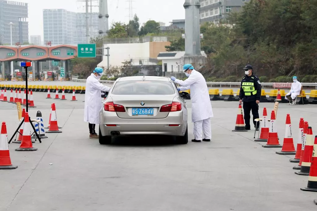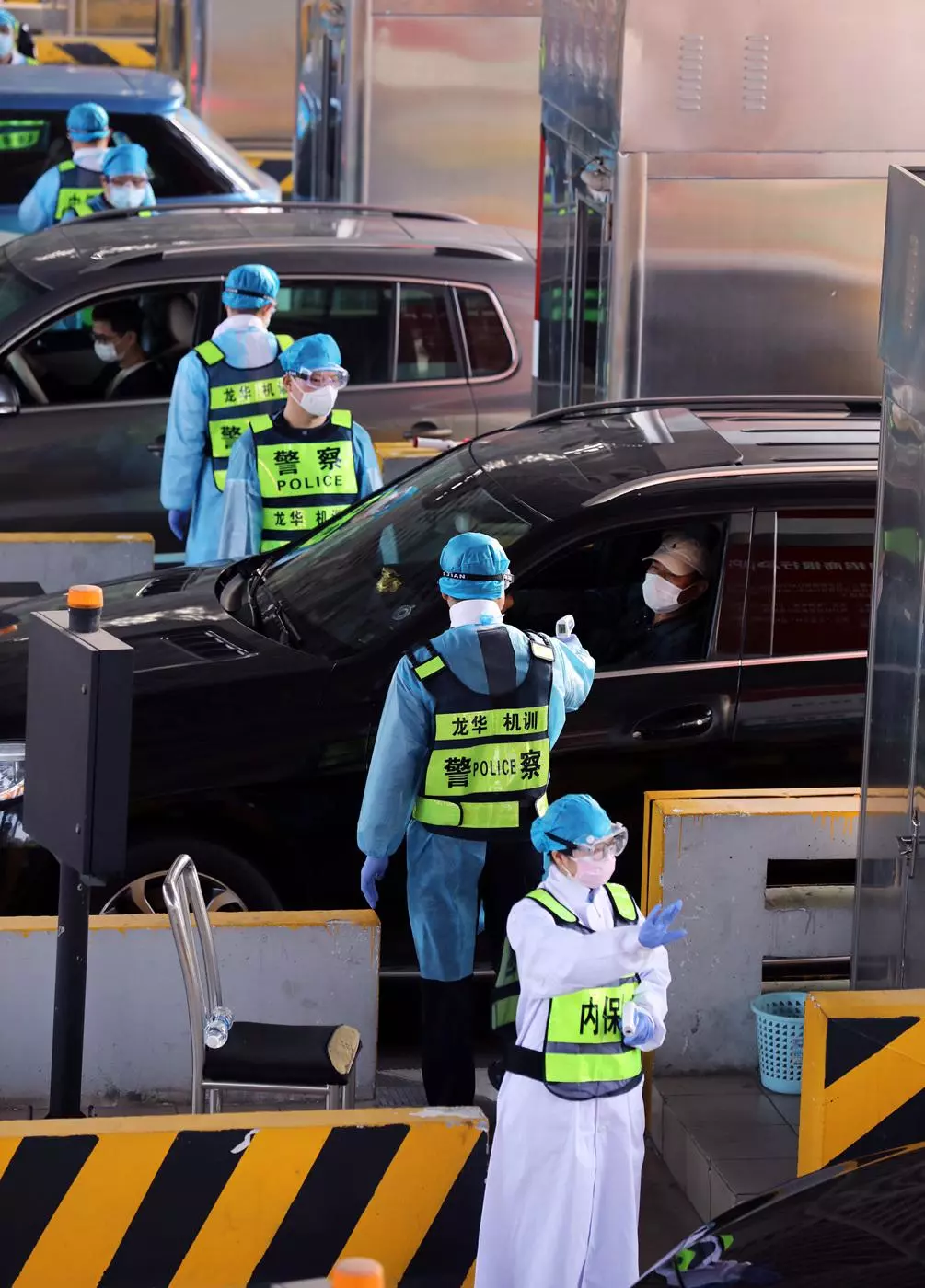醫(yī)務(wù)人員對(duì)入深車(chē)輛乘員進(jìn)行二次測(cè)溫。