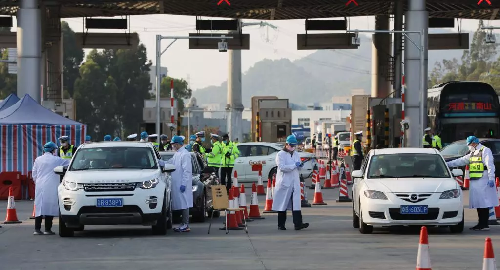 2月2日中午,深晚記者來(lái)到梅觀(guān)高速觀(guān)瀾收費(fèi)站,發(fā)現(xiàn)這里開(kāi)通了4條車(chē)道供車(chē)輛通行,現(xiàn)場(chǎng)有超過(guò)20名民警、醫(yī)務(wù)人員檢測(cè)入深車(chē)輛司乘人員的體溫。