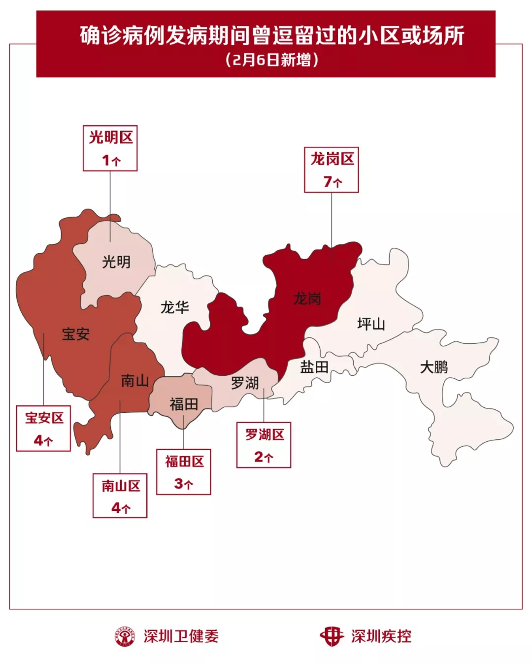 2月6日,疾控專(zhuān)業(yè)人員通過(guò)最新的流行病學(xué)調(diào)查確認(rèn),深圳新增21個(gè)小區(qū)(場(chǎng)所),有新確診的病人在出現(xiàn)病征期間曾經(jīng)逗留。
