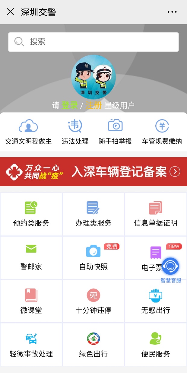 “深圳交警星級用戶”首頁上的網(wǎng)上申報入口。