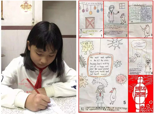 五(6)中隊(duì)的徐曼同學(xué)通過繪本讓更多的小朋友了解新型冠狀病毒感染的肺炎。