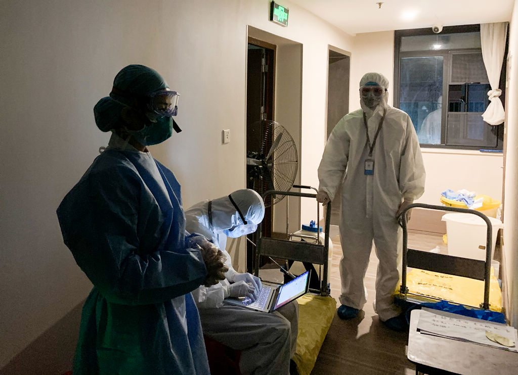“雖然停電了,但是工作不能停,我們不僅要準備好明天的防護用品,更要時刻關注‘家人們’的情緒,盡我們最大的努力去幫助他們,我們隔離病毒,但不隔離愛?!斌A站的醫(yī)護人員說道。