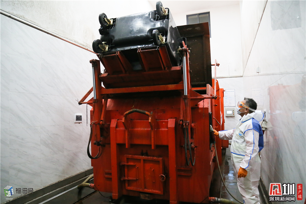 現(xiàn)代化城市生活固然便捷,但是也制造巨量的生活垃圾。垃圾清運人員凌晨3點半起床后開始準備一天的工作。這段時間,轉(zhuǎn)運站配置1:250的高濃度消毒液,一桶消毒液夠用一個垃圾轉(zhuǎn)運站。記者看到,電動垃圾轉(zhuǎn)運車上的四個環(huán)衛(wèi)消殺工作人員穿著厚厚的白藍色隔離服,全副武裝迎接來自轄區(qū)源源不斷運過來的垃圾桶,隨著垃圾轉(zhuǎn)運車后滋滋作響的電流聲,車后的平板放下來了,一桶桶垃圾平穩(wěn)有序的拽拉進垃圾轉(zhuǎn)運站進行壓縮,因工作服的關系,工作人員眼罩上經(jīng)常被一層厚厚的水霧糊上,工作期間會把手套摘除后,從手心處甩出一把把汗。