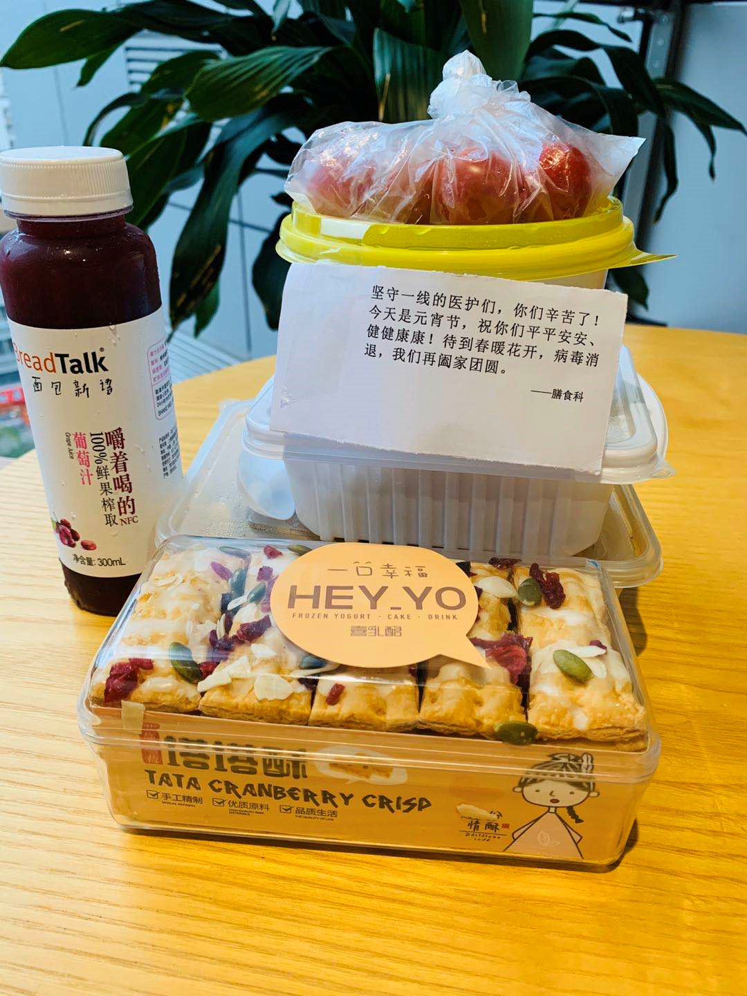 當(dāng)天中午和晚上,發(fā)熱門診、感染科、隔離病房、檢驗科等一線的醫(yī)護(hù)人員,除了收到可口的飯菜外,還收到了一碗熱氣騰騰的湯圓。讓他們意外的是,湯圓盒上還貼了溫馨的字條,“堅守一線的醫(yī)護(hù)們,你們辛苦了!今天是元宵節(jié),祝你們平平安安、健健康康!待到春暖花開,疫情消退,我們再闔家團(tuán)圓?!?/p>