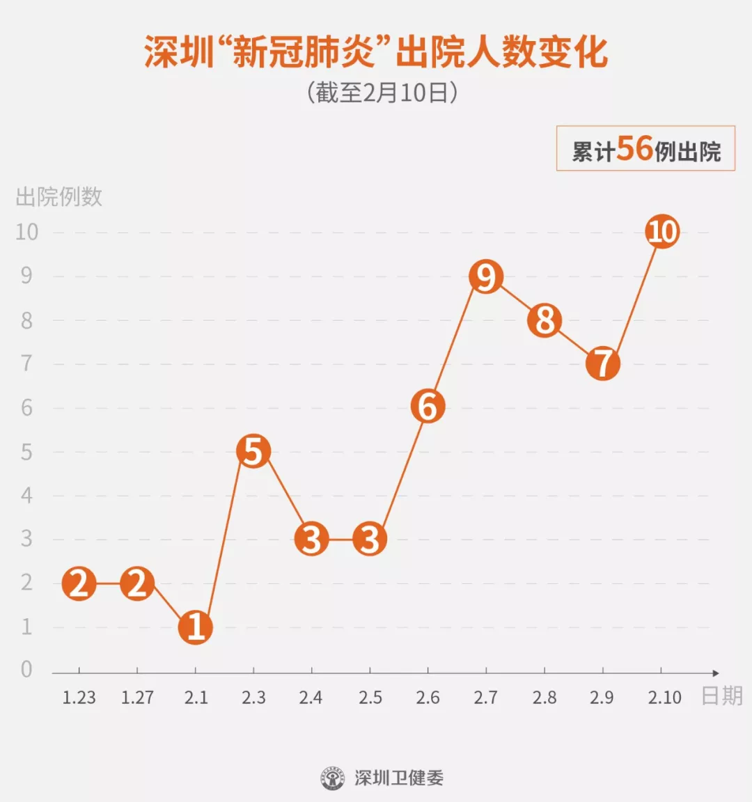 2月10日下午,經(jīng)專(zhuān)家組會(huì)診,深圳再有10名新型冠狀病毒肺炎確診患者出院,累計(jì)的出院者達(dá)56人。