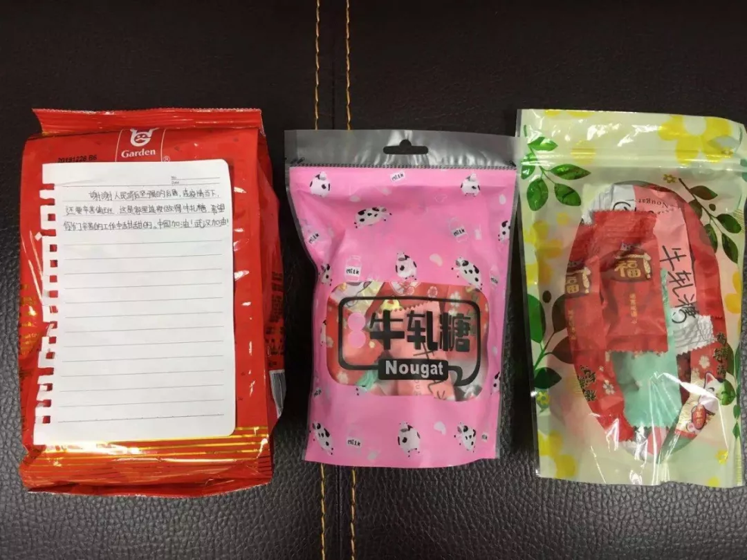 2月4日4時(shí)許,夜深人靜,深圳市公安局福田分局香蜜湖派出所收到了一份特殊的禮物:三袋還帶著余溫的暖心食品,還附著一張小紙條:“謝謝人民背后堅(jiān)強(qiáng)的后盾,在疫情當(dāng)下,還要辛苦值班,這是家里連夜做的牛軋?zhí)牵M銈冃量嗟墓ぷ髦刑鹛鸬?。中?guó)加油!武漢加油!”這名熱心市民表示,上一次到派出所求助的時(shí)候就是深夜凌晨4點(diǎn)鐘,知道派出所的同志深夜的時(shí)候仍在辛苦值班,所以剛剛在家里做好了牛扎糖就迫不及待地馬上送來,希望派出所的同志趁熱吃一點(diǎn),暖暖身子。收到如此暖心的禮物,香蜜湖派出所對(duì)這位熱心市民表示衷心感謝!