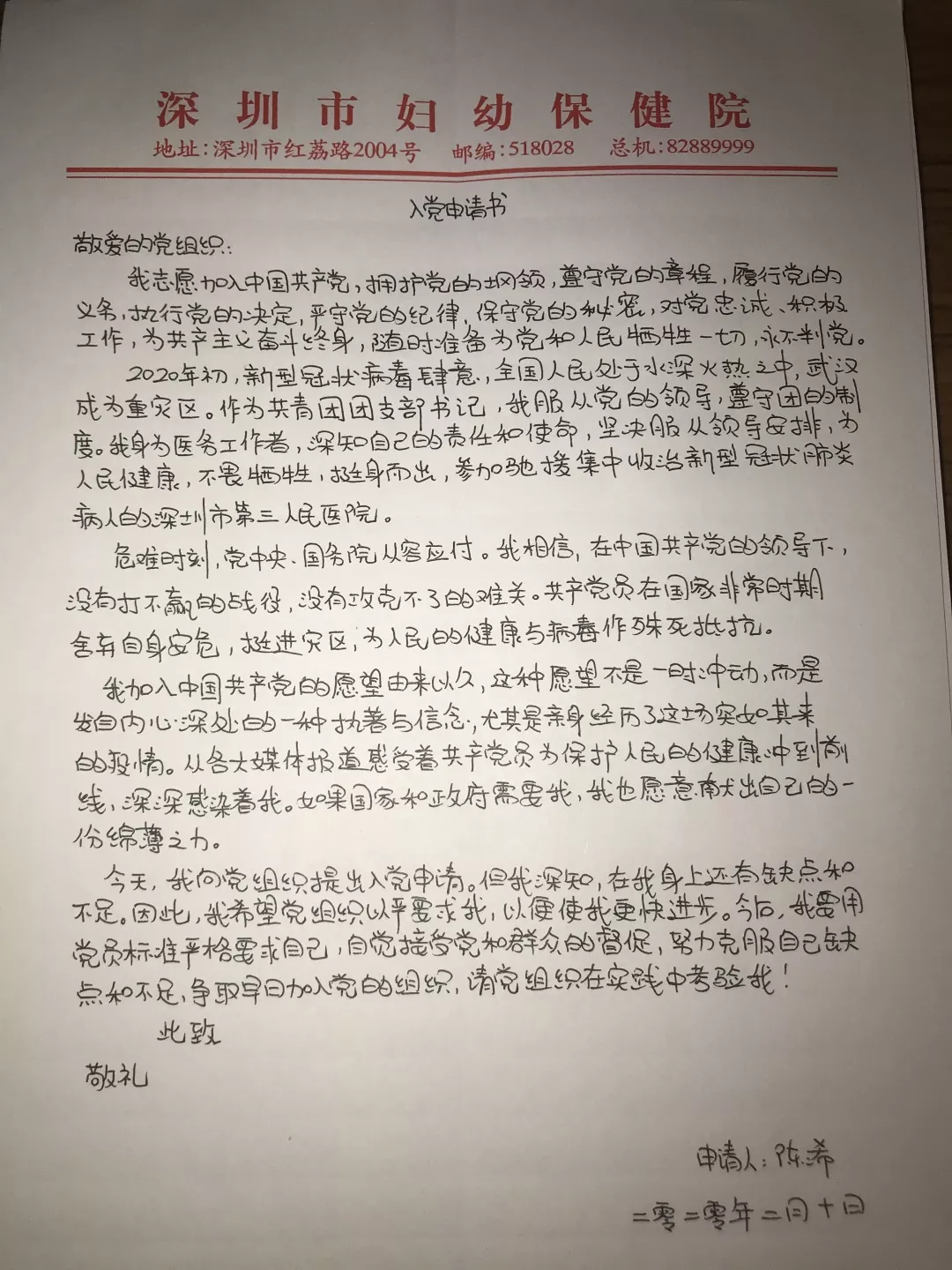 黨旗,在戰(zhàn)“疫”防線上高高飄揚(yáng)|系列報(bào)道七:來自戰(zhàn)疫前線的入黨申請(qǐng)書