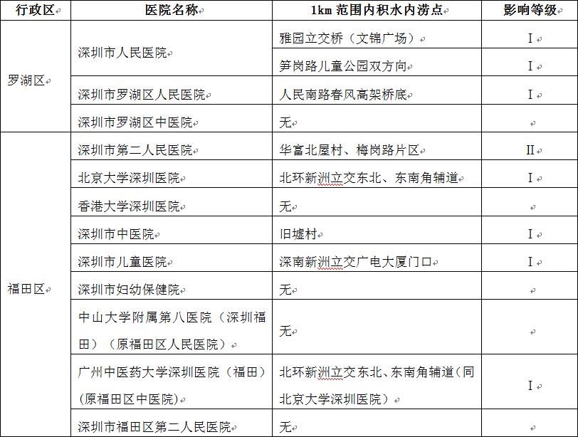 根據(jù)2019年度全市積水內(nèi)澇報(bào)送情況,深圳市水務(wù)局初步梳理出全市49家發(fā)熱門(mén)診(含1家新型冠狀病毒感染肺炎定點(diǎn)救治醫(yī)院)周邊積水內(nèi)澇點(diǎn)29處,并結(jié)合積水內(nèi)澇嚴(yán)重情況分為Ⅰ、Ⅱ、Ⅲ級(jí),詳見(jiàn)附件1《全市發(fā)熱門(mén)診及定點(diǎn)救治醫(yī)院周邊積水內(nèi)澇點(diǎn)初步梳理情況》。