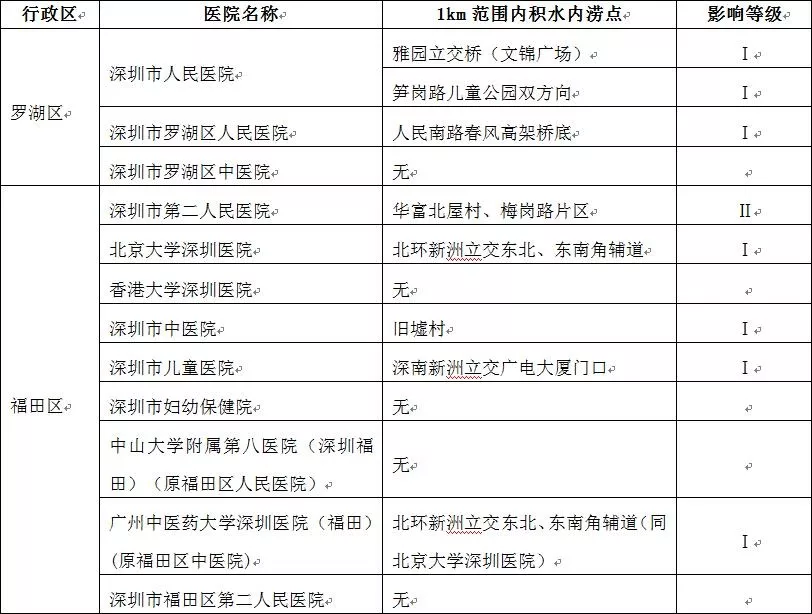 根據(jù)2019年度全市積水內(nèi)澇報送情況,深圳市水務(wù)局初步梳理出全市49家發(fā)熱門診(含1家新型冠狀病毒感染肺炎定點救治醫(yī)院)周邊積水內(nèi)澇點29處,并結(jié)合積水內(nèi)澇嚴重情況分為Ⅰ、Ⅱ、Ⅲ級。
