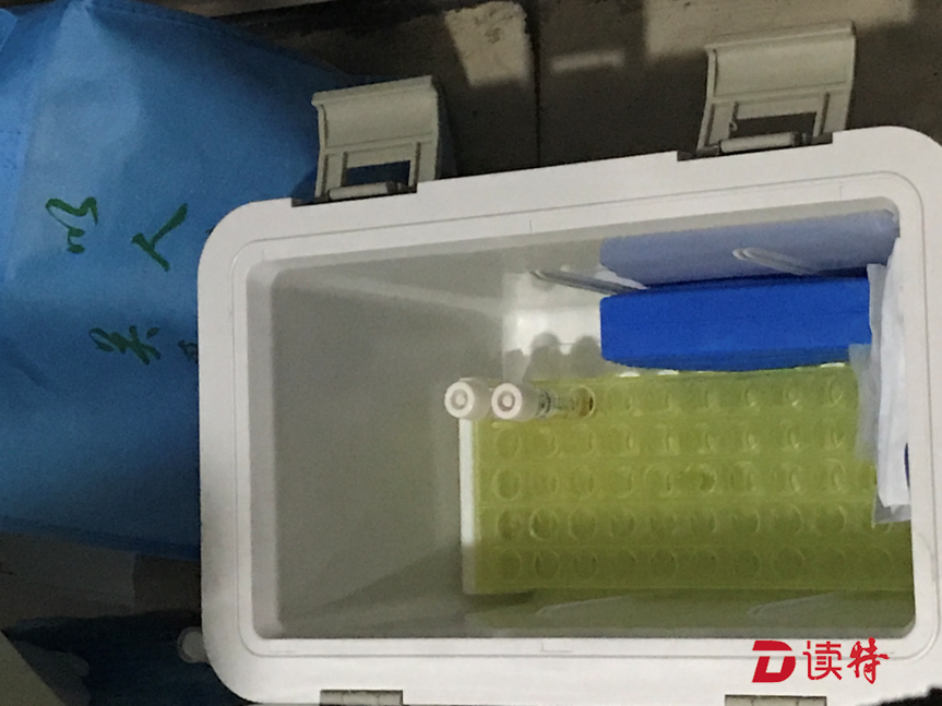 據(jù)了解,為了增加采樣的準(zhǔn)確性,每個醫(yī)學(xué)觀察居民均采用咽部和鼻腔分別取樣。醫(yī)護人員先用一個咽拭子在孫女士的咽喉內(nèi)部輕輕擦拭,另一個鼻拭子在鼻道內(nèi)鼻腭處轉(zhuǎn)動,然后將拭子放入貼有標(biāo)簽的樣本管內(nèi)。完成操作后,三位工作人員更換手套,為孫女士的愛人和孩子完成了采樣,采集的樣品被放入了工作人員隨身攜帶的“送檢專用箱”中。
