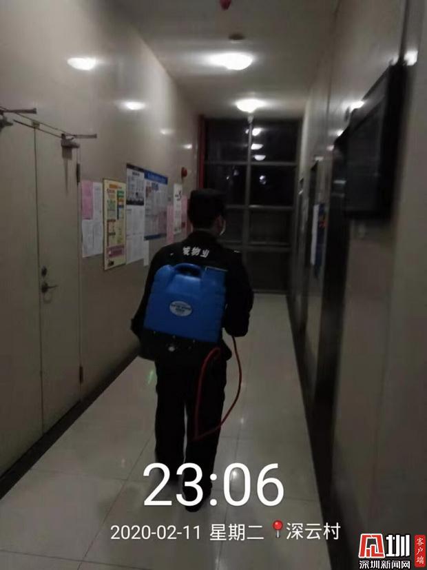 深云村物業(yè)員工對(duì)小區(qū)進(jìn)行消毒