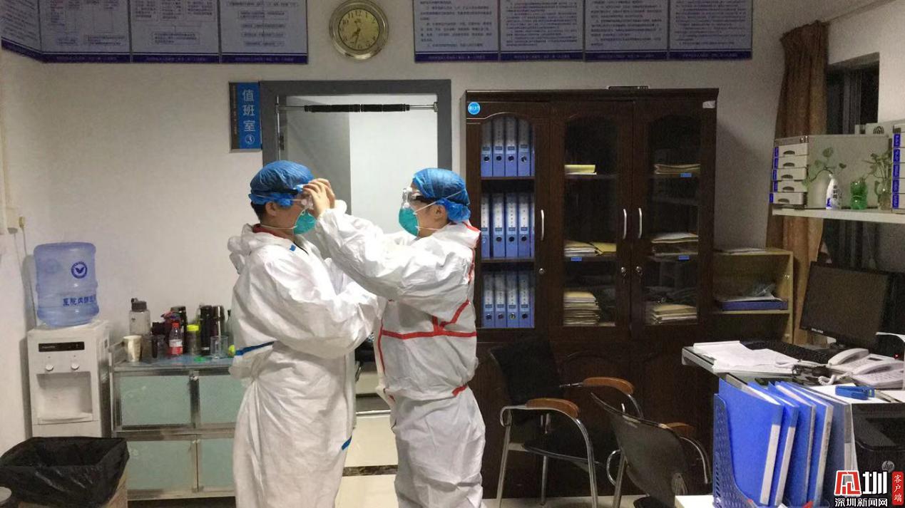 互相穿脫隔離服。