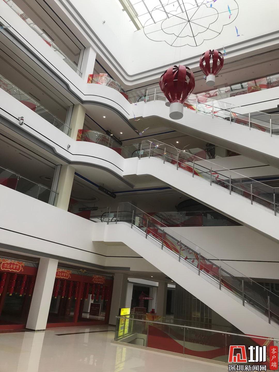 萬達(dá)廣場四層的商場里只有超市在營業(yè)。