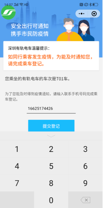 第三步:輸完其他乘客手機號后,收起鍵盤,再點擊【提交登記】按鈕即可完成登記。