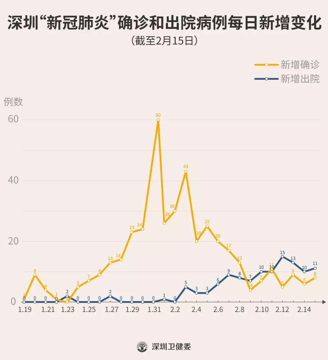 截至2月15日24時(shí),深圳累計(jì)報(bào)告“新冠肺炎”確診病例414例。2月15日當(dāng)天全市新增確診病例8例(個(gè)案詳情今晚公布)。 ▲新增出院病例已超過(guò)新增確診病例 累計(jì)報(bào)告確診病例中,男性195例、女性219例。 按照病例管理地區(qū)劃分,南山區(qū)87例、福田區(qū)78例、龍崗區(qū)71例、寶安區(qū)62例、龍華區(qū)34例、羅湖區(qū)32例、光明區(qū)11例、坪山區(qū)7例、鹽田區(qū)6例、大鵬新區(qū)2例、其他(指由機(jī)場(chǎng)、車(chē)站、碼頭、關(guān)口、路卡等直接送往定點(diǎn)醫(yī)院的)24例。 目前,重癥29例、危重癥9例,無(wú)死亡病例,累計(jì)出院115例。 299例確診病例均在深圳市第三人民醫(yī)院隔離治療。 541例密切接觸者正在接受醫(yī)學(xué)觀察。 資料來(lái)源:深圳市疾控中心、深圳市衛(wèi)健委、廣東省衛(wèi)健委