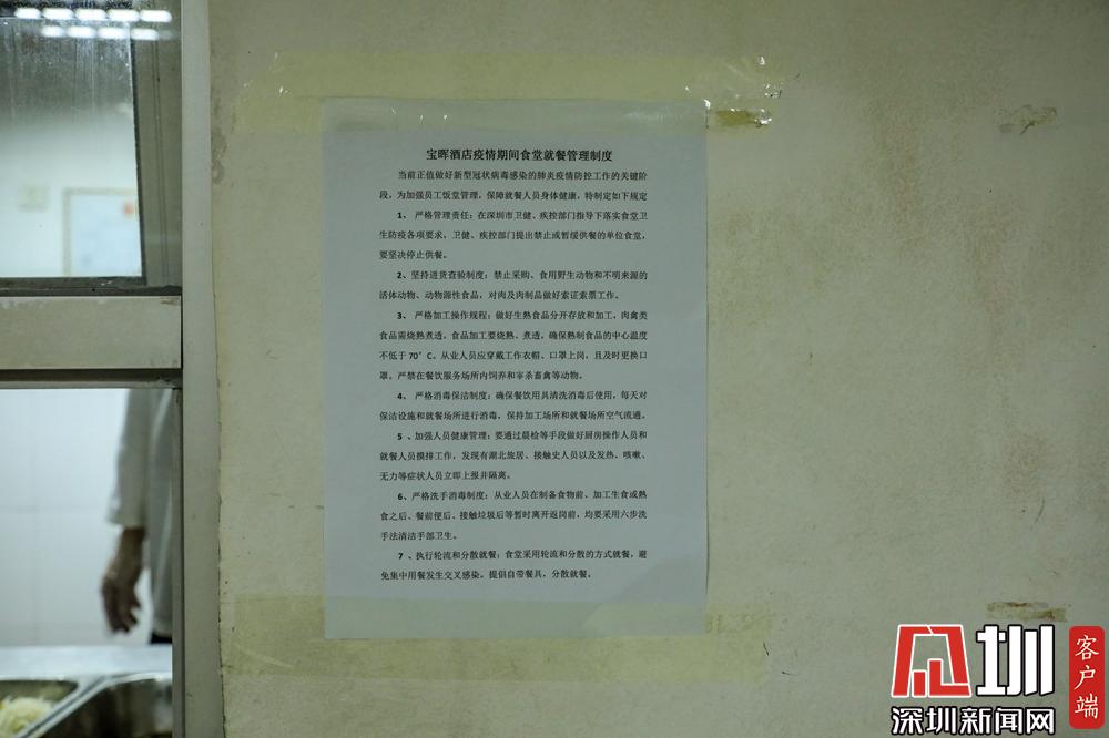和大部分酒店選擇關閉餐廳不同,寶暉酒店員工食堂仍然開放,但是制定了嚴格的就餐制度,實行分時段就餐、由廚師統(tǒng)一打飯菜、按統(tǒng)一朝向間隔就坐等規(guī)定。