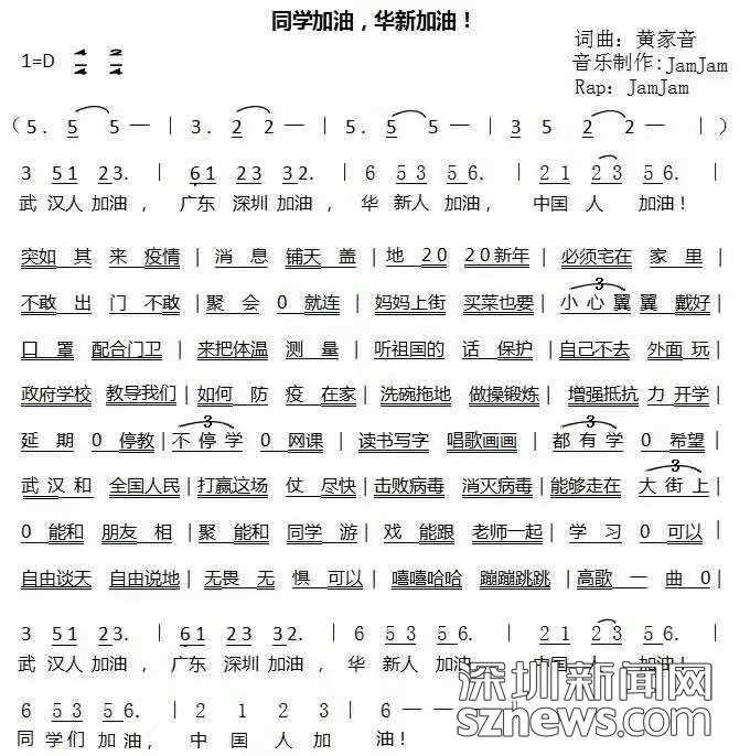 學(xué)生謝錦曦說:“我很開心我能作為學(xué)生代表歌唱黃老師專門為武漢,為中國,為我們?nèi)A新寫的歌曲。開學(xué)典禮的時(shí)候,當(dāng)我聽到我為武漢的加油聲從視頻里傳到了每個(gè)華新人的耳朵里、心里,我想著他們跟我一起為武漢加油,為中國加油,心里就非常開心?!?/p>