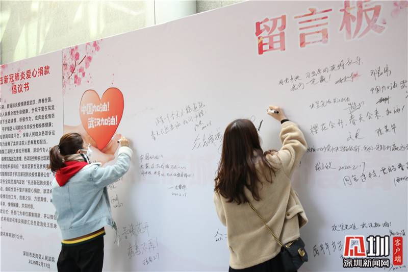 與此同時(shí),龍崗法院黨組積極響應(yīng)龍崗區(qū)疫情防控指揮部關(guān)于抗疫募捐的號(hào)召,于2月16日晚向全院發(fā)出了“抗擊新冠肺炎愛心捐款”倡議,號(hào)召全院干警積極開展愛心捐款及留言祝福活動(dòng)。2月17日,龍崗法院領(lǐng)導(dǎo)帶頭捐款,廣大干警紛紛慷慨解囊,同時(shí)在留言板寫下了戰(zhàn)“疫”必勝的信心和對(duì)武漢對(duì)祖國(guó)的美好祝愿。短短一天時(shí)間里共有523人奉獻(xiàn)愛心,募集善款107490元。