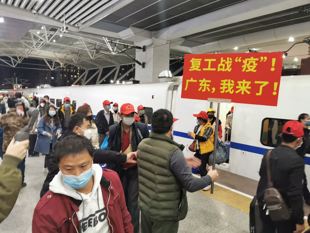 目前,在全省上下全力抗擊新冠肺炎疫情的同時,廣東各類企業(yè)已陸續(xù)復(fù)工復(fù)產(chǎn)。針對節(jié)后部分務(wù)工人員返程難、部分企業(yè)用工難的問題,廣東省人社部門在全面落實省委省政府疫情防控決策部署的前提下,主動加強與勞務(wù)輸出省份溝通對接,對疫情相對平穩(wěn)、來粵就業(yè)人員相對集中的云南、四川等部分省份,聯(lián)合當(dāng)?shù)厝松绮块T共同組織開行“點對點”返粵返崗專列,為務(wù)工人員提供全流程的返崗對接服務(wù)。據(jù)悉,在本趟列車開行前,廣東省人社部門根據(jù)重點企業(yè)和項目復(fù)工復(fù)產(chǎn)安排,向云南省人社部門提供不同時段的企業(yè)空缺崗位共11萬個,由當(dāng)?shù)厝松绮块T按需組織發(fā)動務(wù)工人員并開展集中健康檢測,出具健康證明;途中,云南人社部門會同鐵路部門,共同落實好務(wù)工人員進站、候車、乘車、出站等環(huán)節(jié)的疫情防控和客運服務(wù)等措施,確保復(fù)工人員安全、有序、溫馨出行;到粵后,廣東人社部門提供專車將務(wù)工人員接駁至企業(yè),幫助企業(yè)做好疫情期間員工組織接收、上崗復(fù)工等準(zhǔn)備工作。廣東省人社廳相關(guān)工作人員表示:“今年受疫情影響,節(jié)后短期缺工現(xiàn)象比往年更為突出。特殊情況需要特別舉措,除了讓務(wù)工者免費乘坐返崗專列,我們還為一些去汕頭、陽江等較遠(yuǎn)地區(qū)企業(yè)而沒法當(dāng)天到達的零散務(wù)工者,貼心地提供免費住宿,還買好次日去企業(yè)所在地的車票,送他們上車,并對接當(dāng)?shù)厝松绮块T安排車輛接駁至廠。我們通過這種‘一條龍’無縫對接服務(wù),既滿足企業(yè)復(fù)產(chǎn)的用工需求,又降低返程運輸?shù)囊咔閭鞑ワL(fēng)險”。