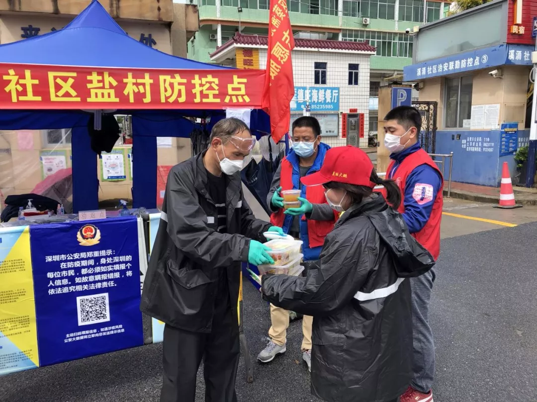 兩人為防疫檢查點(diǎn)工作人員送去午餐