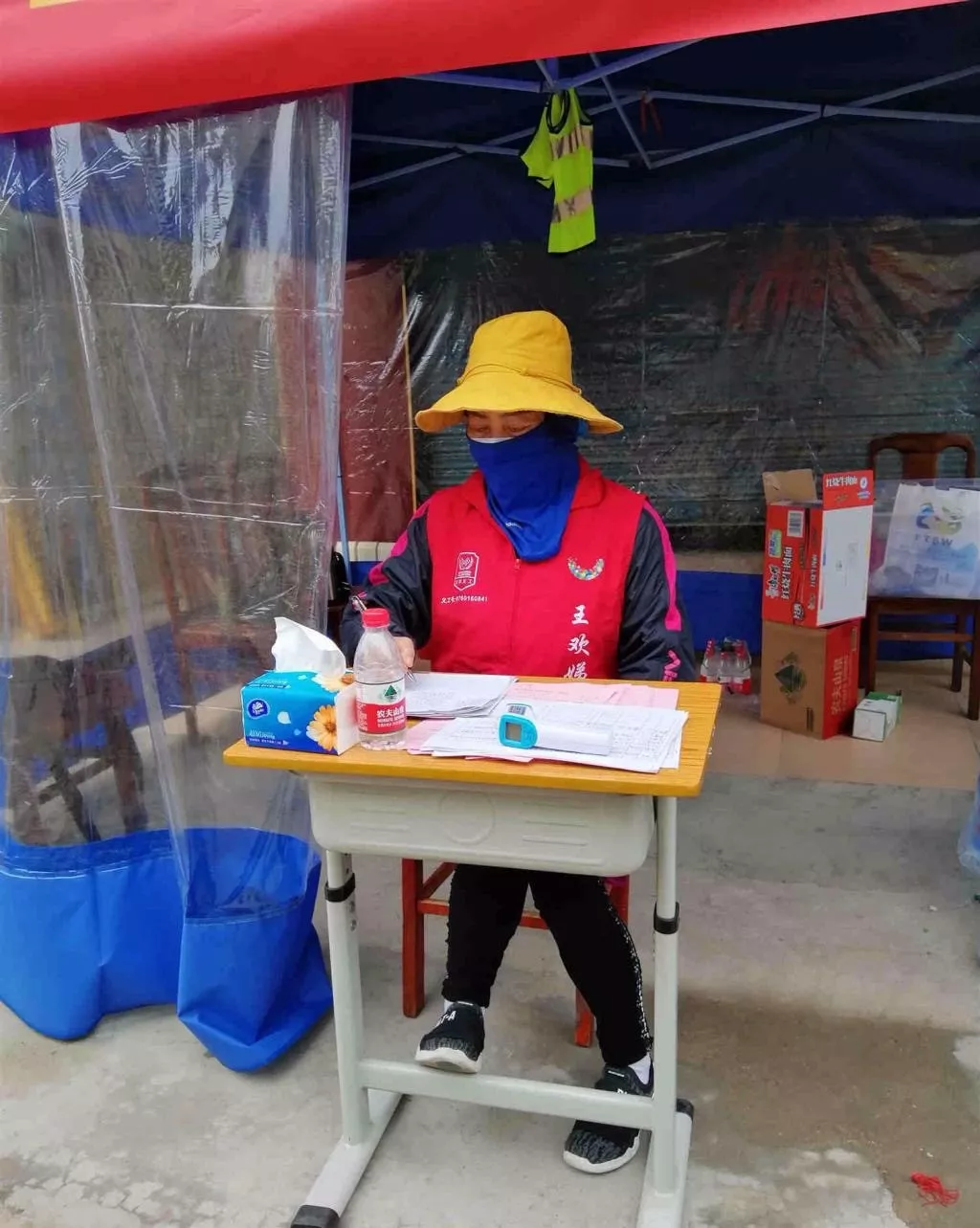 在龍崗區(qū)平湖街道力昌社區(qū)防控防疫卡點(diǎn),一名身著紅馬甲的志愿者忙個(gè)不停。雖然她的臉被口罩、帽子遮得嚴(yán)嚴(yán)實(shí)實(shí),但紅馬甲上寫著得三個(gè)大字透露了她的身份:王歡娣。