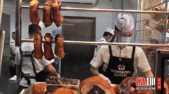 餐廳工作人員正在制作燒臘。