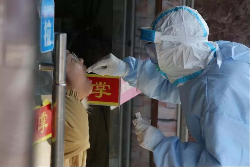 龍華區(qū)醫(yī)護采樣人員認真負責完成好每一戶留觀人員的采樣排查。