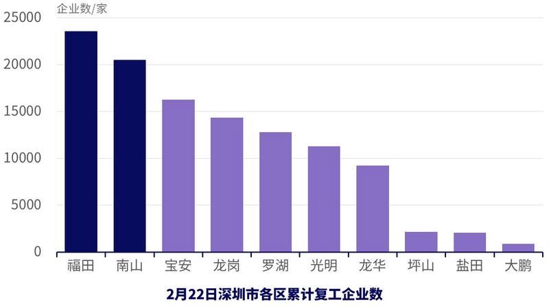 截至2月22日,全市累計(jì)復(fù)工企業(yè)已達(dá)11萬(wàn)余家,其中,福田區(qū)、南山區(qū)已有超過2萬(wàn)家企業(yè)復(fù)工,復(fù)工率在全國(guó)主要經(jīng)濟(jì)城市中名列前茅。