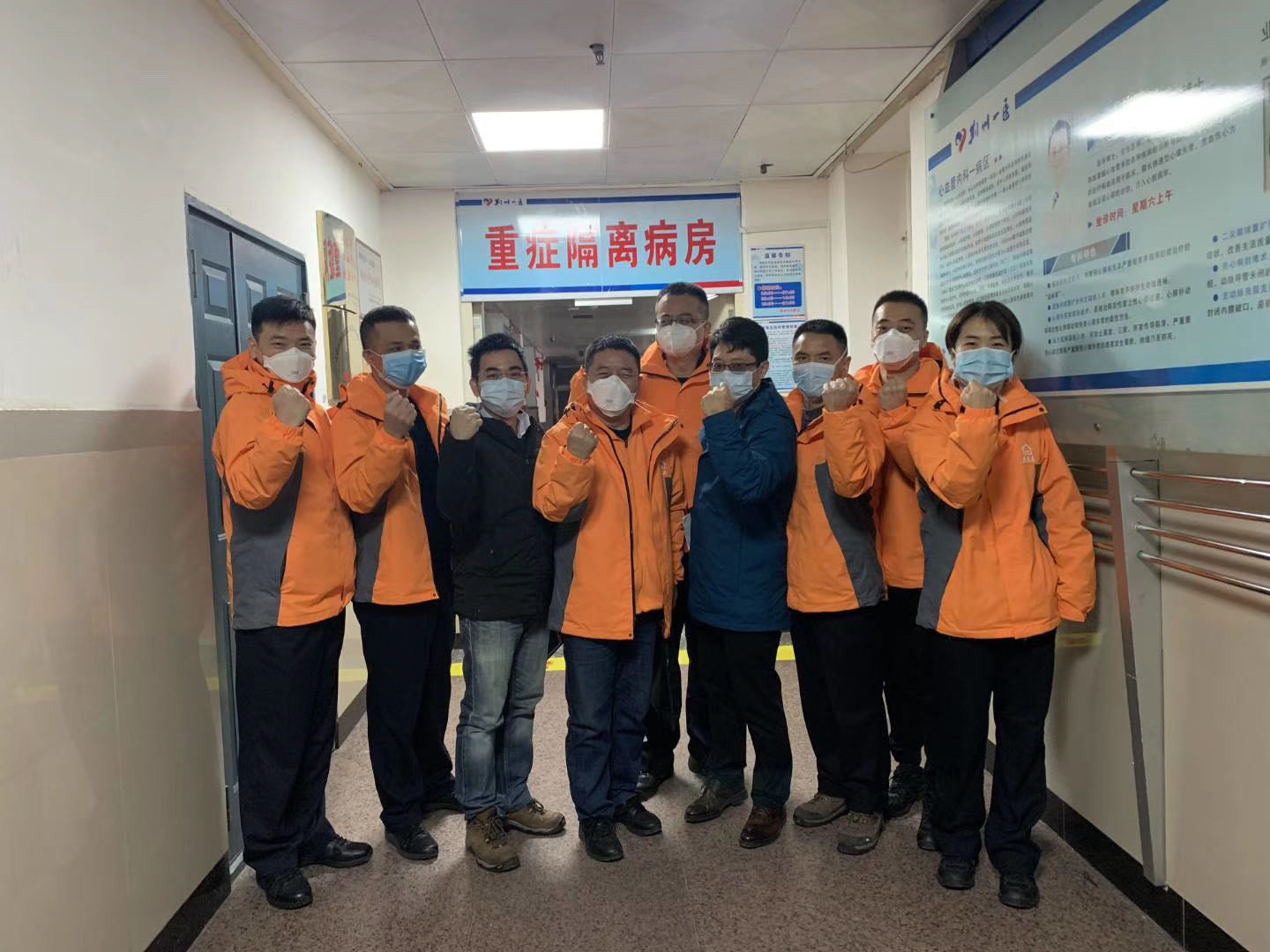 醫(yī)生團隊共有7個人,我也將他們送到重癥隔離病區(qū)門口。我不能進(jìn)去,就和大家一起合了個影,這是我這一輩子都不能忘記的一次合影,我們每個人豎拳的手勢都那么有力,每個人的眼神都那么堅定!連最瘦弱的女醫(yī)生單雪也看起來充滿力量。