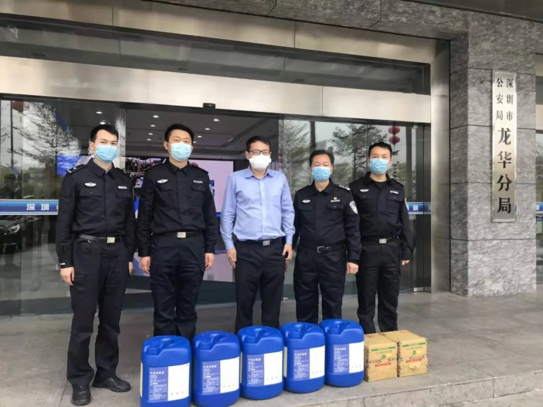 在疫情期間,這并不是他們第一次捐贈。早在1月31日,慈善小團隊就給龍華公安分局、龍華街道辦事處、龍華區(qū)網格辦等幾個部門送去了價值約8萬元的消毒水。之后,又陸陸續(xù)續(xù)向深圳市公安局捐贈12桶消毒原液,向龍華公安分局捐贈了7桶消毒水,向社區(qū)捐贈醫(yī)用口罩1000個、5桶消毒水、20瓶300毫升消毒水,向龍華區(qū)人民醫(yī)院捐贈