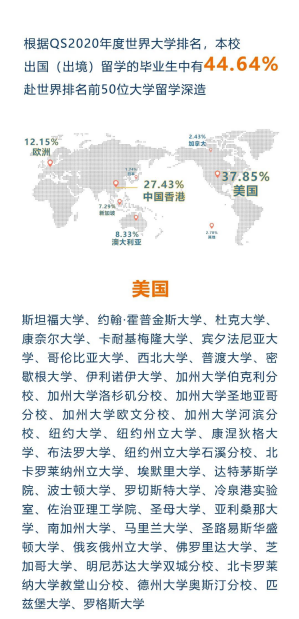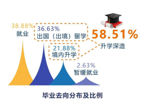 從本科畢業(yè)生升學(xué)情況來(lái)看,有超六成同學(xué)選擇了境外留學(xué),其中四成為直博。在2019屆畢業(yè)生里,直博人數(shù)為144人,占全體畢業(yè)生近20%。