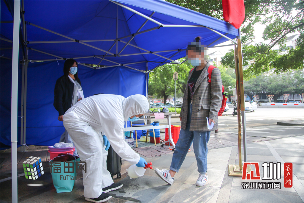 駐點(diǎn)的消殺公司專業(yè)人員對(duì)疫情高發(fā)區(qū)返深人員隨身物品進(jìn)行消殺。