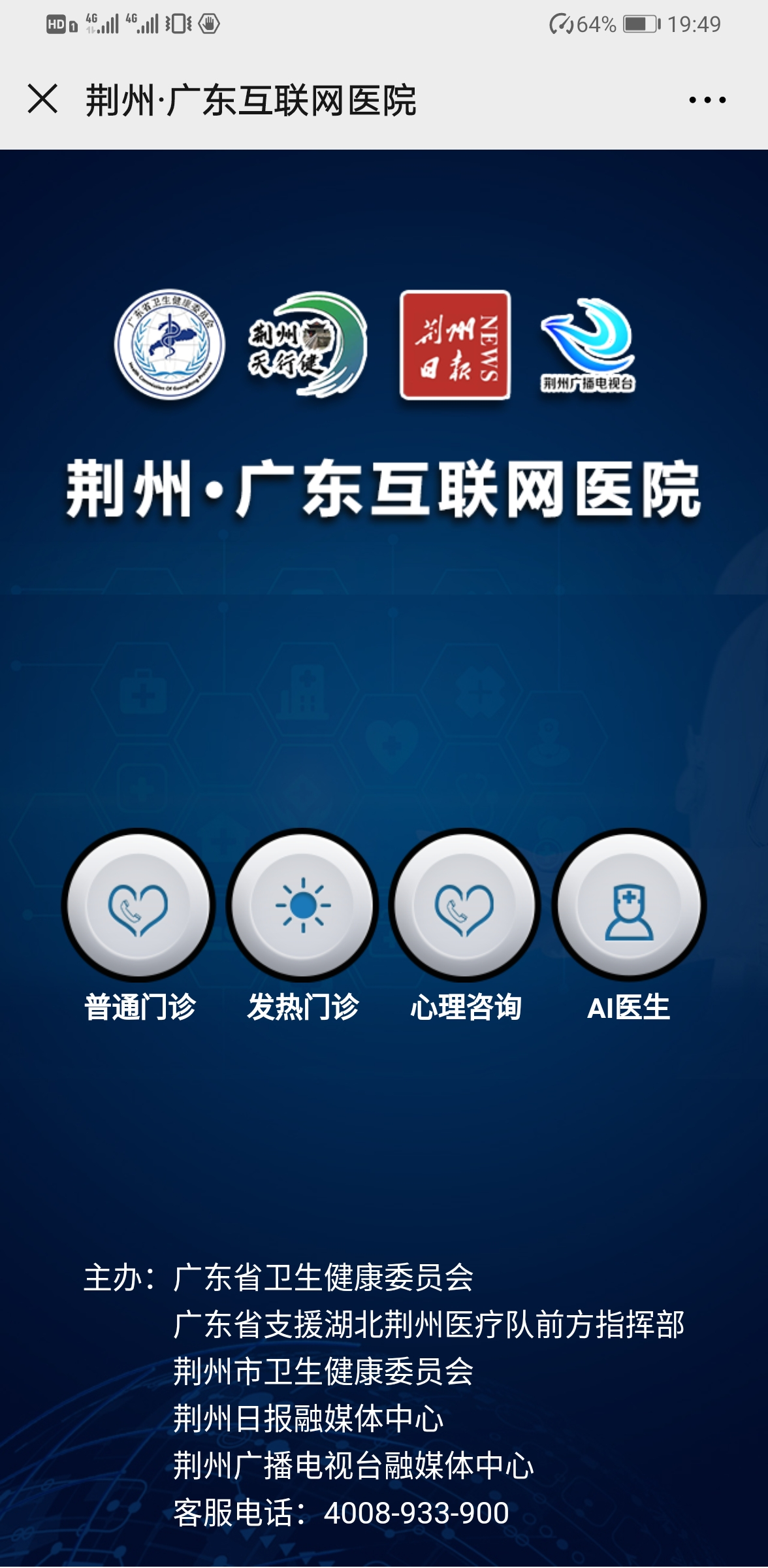 這家互聯(lián)網(wǎng)醫(yī)院是由廣東省衛(wèi)生健康委和廣東支援湖北荊州醫(yī)療隊(duì)前方指揮部聯(lián)合,在充分研判荊州疫情防控形勢(shì)的基礎(chǔ)上組建的網(wǎng)上醫(yī)療隊(duì),實(shí)現(xiàn)荊州市民足不出戶(hù),即可享受后方優(yōu)質(zhì)的線(xiàn)上服務(wù)資源,為前方“主戰(zhàn)場(chǎng)”減負(fù)。