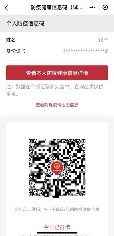 一鍵領(lǐng)取“防疫健康信息碼” 掃一掃出示“掌上健康報(bào)告”