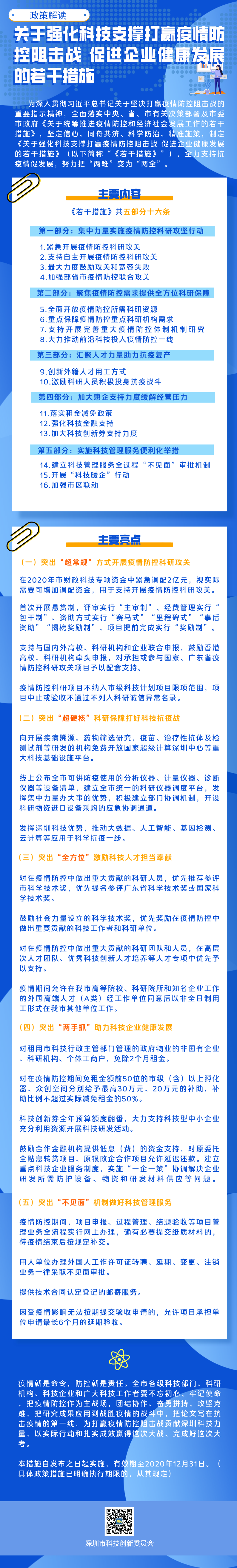 見圳客戶端·深圳新聞網(wǎng)2020年3月3日訊(見圳客戶端、深圳新聞網(wǎng)記者 陳婕)為深入貫徹習(xí)近平總書記關(guān)于堅(jiān)決打贏疫情防控阻擊戰(zhàn)的重要指示精神,深圳市科技創(chuàng)新委員會(huì)制定《關(guān)于強(qiáng)化科技支撐打贏疫情防控阻擊戰(zhàn)促進(jìn)企業(yè)健康發(fā)展的若干措施》(以下簡(jiǎn)稱“《若干措施》”),《若干措施》共五部分十六條,其中,突出“超常規(guī)”方式,在2020年財(cái)政科技專項(xiàng)資金中緊急調(diào)配2億元,視實(shí)際需要可增加調(diào)配資金,用于支持開展疫情防控科研攻關(guān),努力把“兩難”變?yōu)椤皟扇薄?/p>