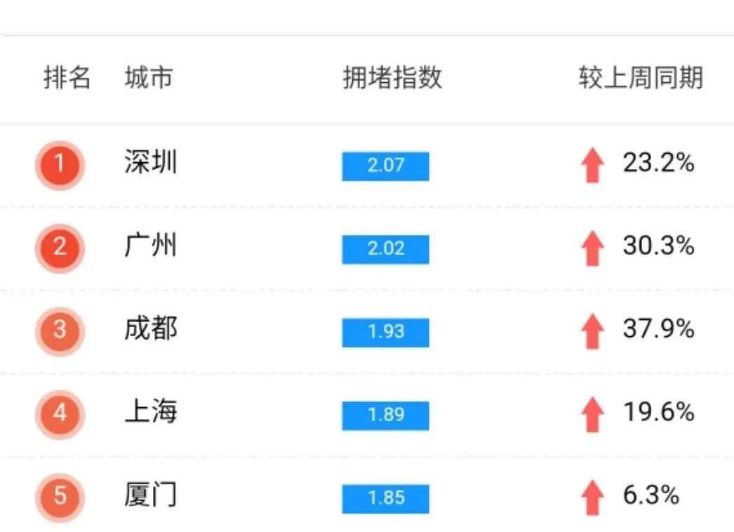 從三天的“擁堵榜單”來看,昨晚深圳“登頂”的時(shí)間要比前兩天提早了35分鐘