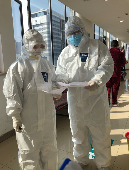 隨后春運返鄉(xiāng)潮高峰很快到來,醫(yī)院發(fā)熱患者開始突增,收住病人持續(xù)增加,按照院領(lǐng)導(dǎo)指示,感染科立即開始調(diào)整床位,調(diào)整醫(yī)生班次,收治發(fā)熱患者,加強防護調(diào)配。黃主任全程參與,每天忙得昏天暗地。尤其是隨著縣中醫(yī)院隔離病區(qū)的展開,感染科主任和另外一位醫(yī)生被派到中醫(yī)院支援,人民醫(yī)院感染科所有的擔(dān)子基本上就全壓在他身上了。每天要下好幾次病房,查看所有患者的診治情況,了解病情變化、做流行病學(xué)調(diào)查、采集患者信息、上報疫情、參與會診......每天工作電話上百計,吃住都在科室,連醫(yī)院集中隔離的宿舍都很少回去,更別說顧及家人了。在連續(xù)奮戰(zhàn)了半個月后,他才第一次接到了八十多歲的老父親打來的電話,頓時鼻子一酸眼眶泛淚,原來父母在家里用的是每天洗了重復(fù)使用的口罩。
