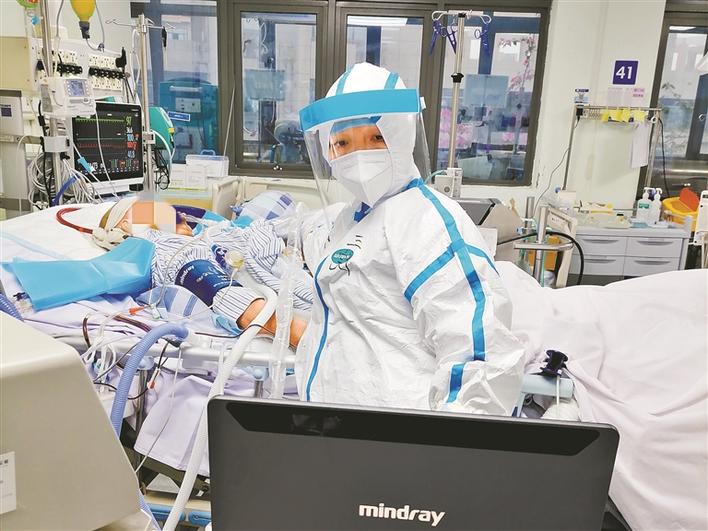 疫情早期,形勢嚴峻,隨著確診病人一批批收治,重癥病房很快進入超負荷狀態(tài)。“最高峰的時候,我們接診了40多名患者,整個ICU病房都住滿了。重癥、危重癥患者有個特點,就是病情變化特別快,一兩個小時病患的情況就差很遠,這就要求我們必須時刻嚴密監(jiān)測。因此,每次在班上,我都處于高度緊張的狀態(tài),不停地要去觀察分析各種數(shù)據(jù),要及時對患者治療進行調(diào)整,加上穿著厚厚的防護服,處于缺氧狀態(tài),有時候確實感覺到蠻累的?!倍@樣超速運轉(zhuǎn)的值班,一直持續(xù)了一個多月。