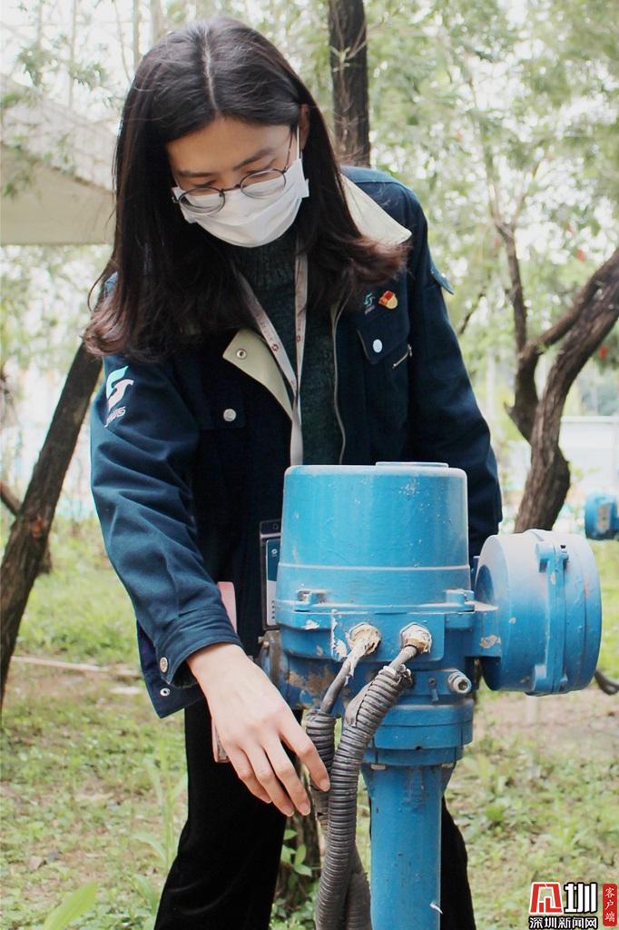 龍華水務公司紅木山水廠秦雯,正檢查濃縮池出水電動蝶閥運作情況。