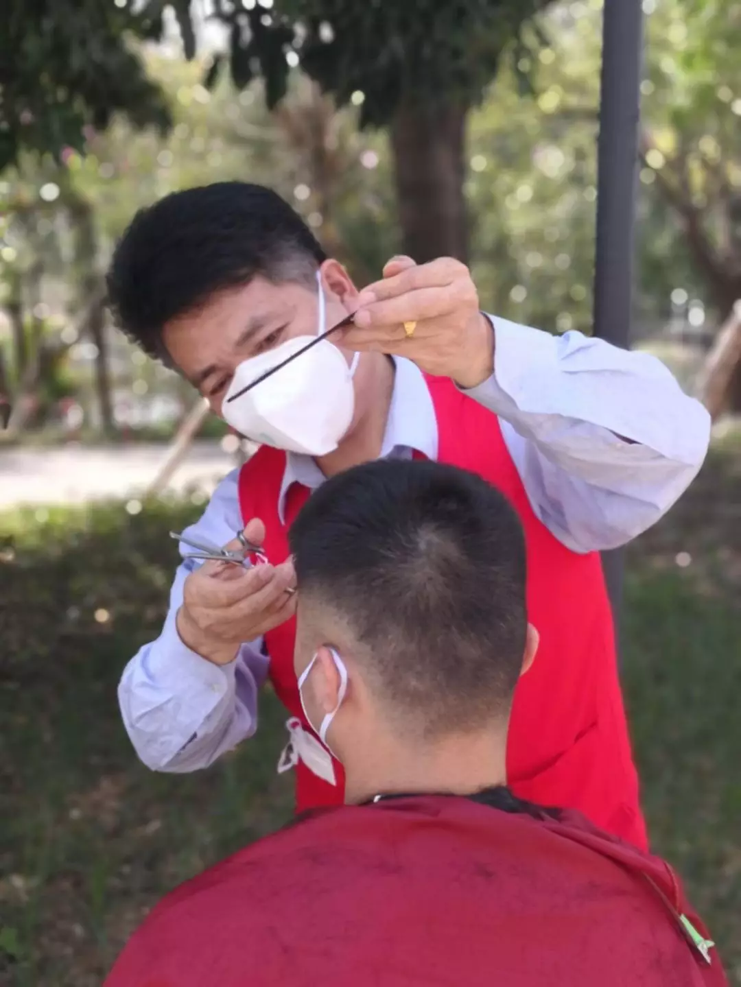 這天,垃圾吊師傅石明山急匆匆找到寶安能源生態(tài)園團(tuán)總支志愿者服務(wù)隊(duì),“我以前開過理發(fā)店,工具就在宿舍,我可以義務(wù)給大家理發(fā)!”大樹下,一套工具,兩把塑料凳,老石的“疫剪理發(fā)站”就齊活了。一個(gè)下午,老石一刻不停地為近50人修剪了精干的發(fā)型,并獲得“顧客”的一致好評(píng)。老值長(zhǎng)陳林生理完發(fā)感慨道:“老石在廠里十幾年了,這么多年都是垃圾吊隊(duì)伍的中堅(jiān)力量,沒想到理發(fā)技術(shù)也這么好!”天黑了,預(yù)約隊(duì)伍里還有數(shù)十人在排隊(duì),石明山說,明天我白轉(zhuǎn)夜,等我后天下夜班,“疫剪理發(fā)站”咱們繼續(xù)!
